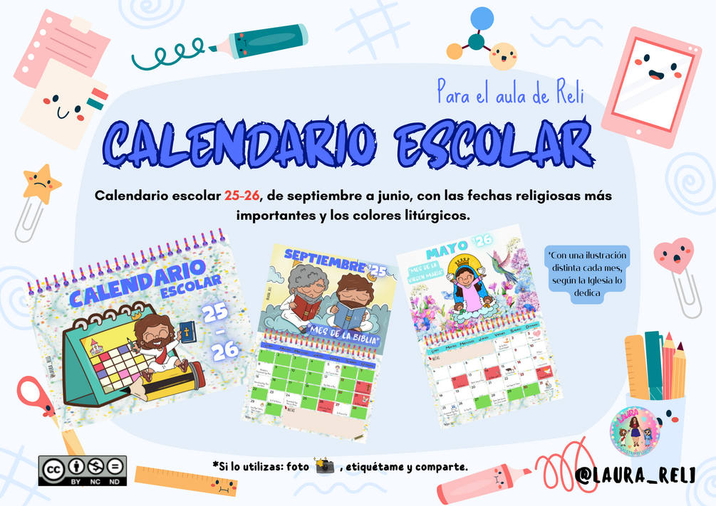 "CALENDARIO ESCOLAR para el aula de Religión Católica"