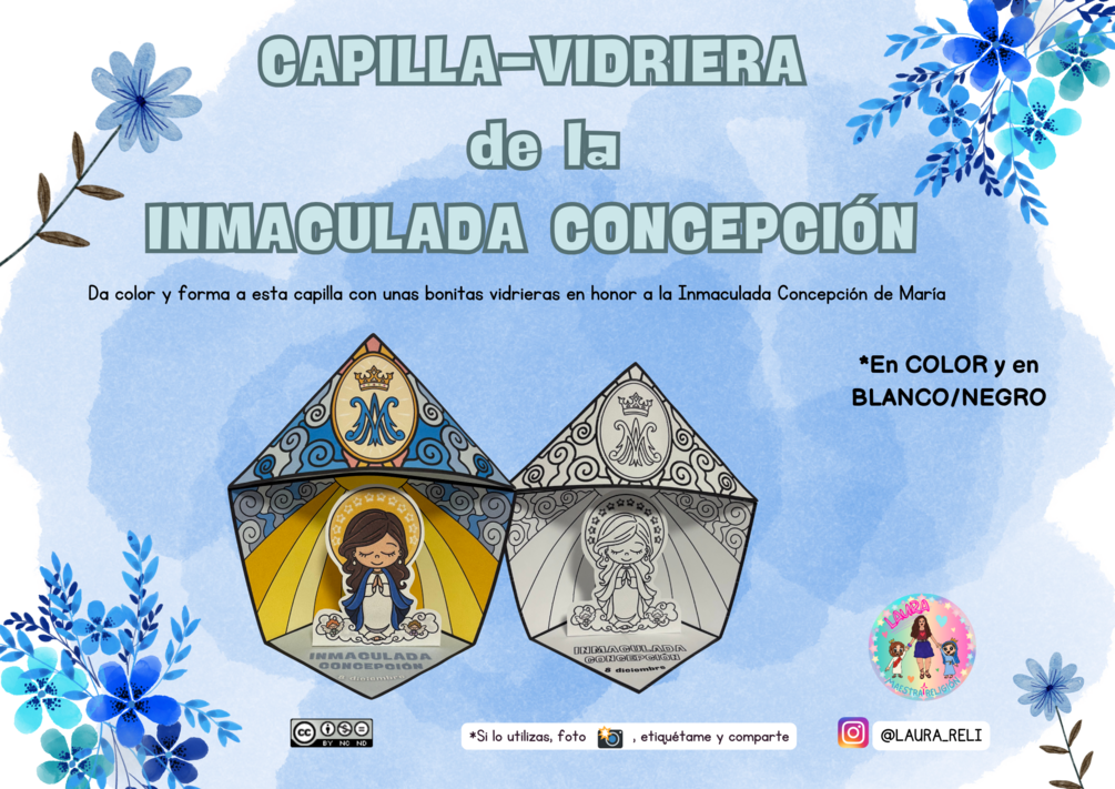 Da color y forma a esta capilla con unas bonitas vidrieras en honor a la Inmaculada Concepción de María, para celebrarla el día de su fiesta: 8 de diciembre.