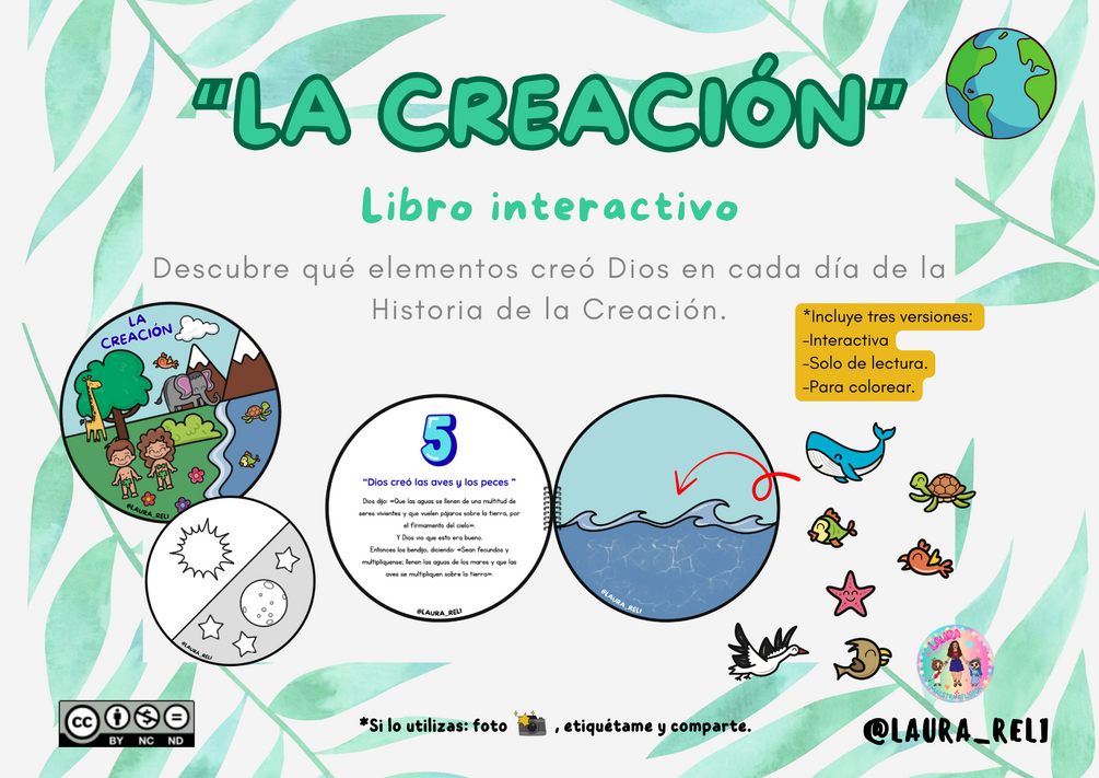 ¿Qué es eso de interactiva? Adivina qué elementos creó Dios en cada día de la Historia de la Creación, a lo largo de la lectura de sus páginas... búscalos y colócalos en su lugar.